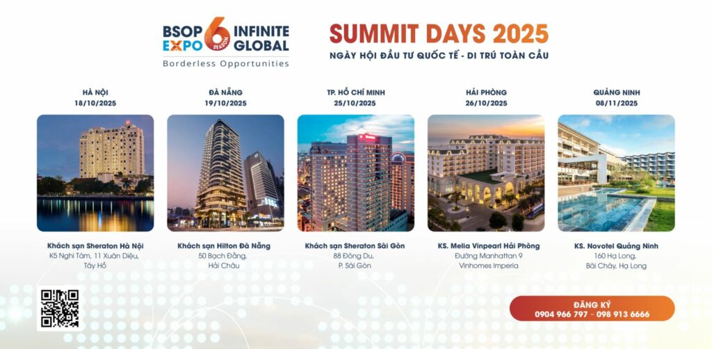 BSOP EXPO 6 – Summit Day quy tụ các diễn giả và đối tác từ châu Âu, Mỹ, Caribe và Đông Nam Á, mang đến góc nhìn thực tế về xu hướng đầu tư quốc tế, quản lý tài sản và chiến lược đa dạng hóa danh mục toàn cầu.