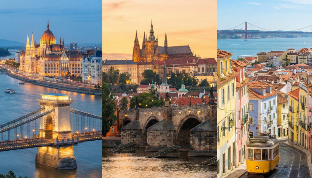 Budapest (Hungary), Prague (Cộng hòa Séc) và Lisbon (Bồ Đào Nha) là bộ ba thủ đô châu Âu nổi tiếng đang thu hút mạnh mẽ du khách, sinh viên quốc tế và nhà đầu tư nhờ sự kết hợp độc đáo giữa vẻ đẹp lịch sử, chi phí hợp lý và chất lượng sống tốt. Cả ba thành phố đều có kiến trúc cổ kính đẹp mắt, văn hóa ẩm thực phong phú và đời sống về đêm sôi động, tạo nên bầu không khí trẻ trung, năng động.