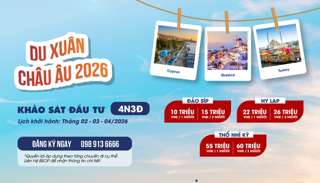 Du xuân châu Âu – Khảo sát đầu tư 2026 cùng BSOP chỉ từ 10 triệu đồng