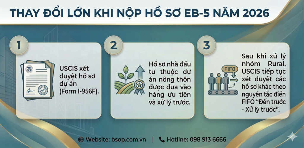 Thay đổi này được đưa ra dựa trên các quy định mới trong EB-5 Reform and Integrity Act of 2022 (RIA), và sẽ chính thức ảnh hưởng đến thứ tự xử lý hồ sơ EB-5 từ ngày 30/03/2026.