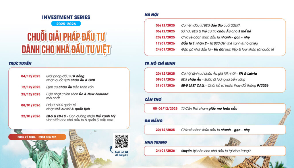 Trong những tháng cuối năm 2025, khi thị trường tài chính và chính sách di trú toàn cầu liên tục biến động, việc tiếp cận đúng thông tin, đúng thời điểm trở thành lợi thế quan trọng giúp nhà đầu tư chủ động bước sang năm 2026.
