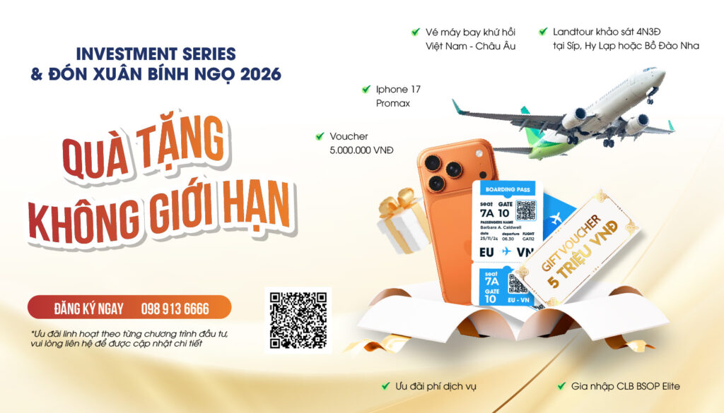 Với mục tiêu hỗ trợ nhà đầu tư Việt ra quyết định sớm – đúng – hiệu quả, BSOP triển khai Investment Series 2025–2026, kèm theo các ưu đãi và đặc quyền dành riêng cho nhà đầu tư tham dự và hành động sớm.